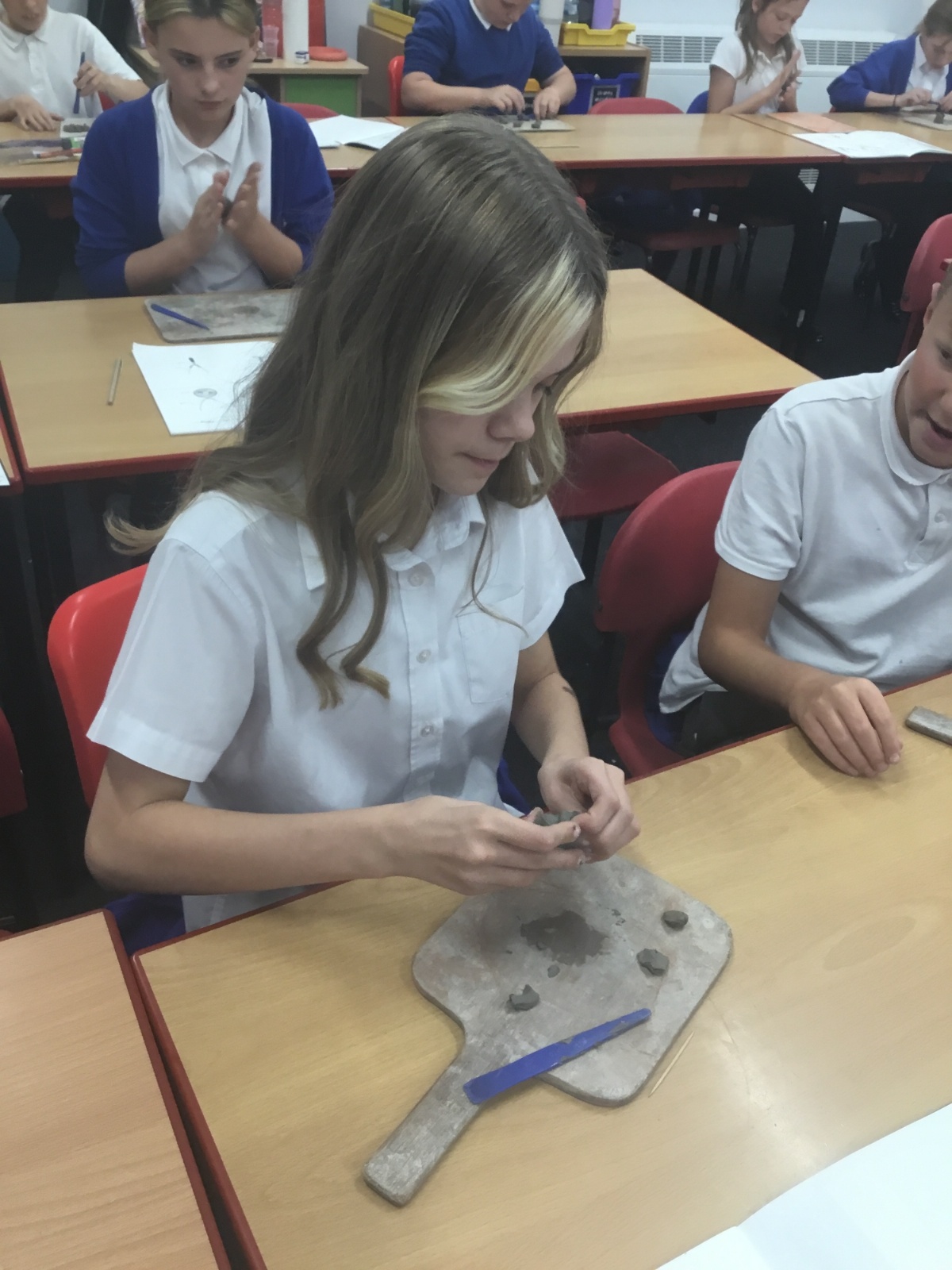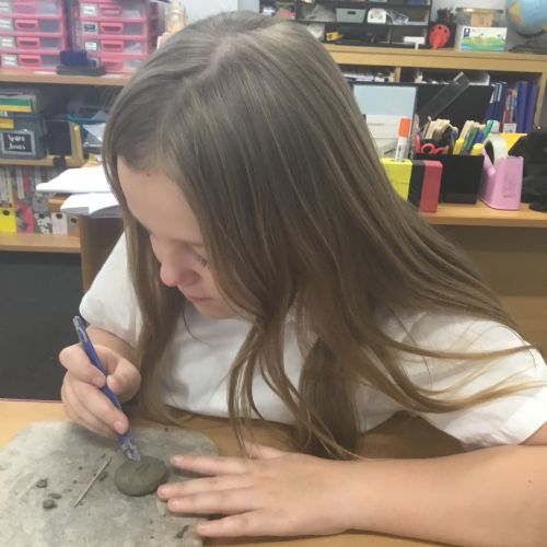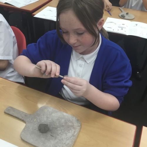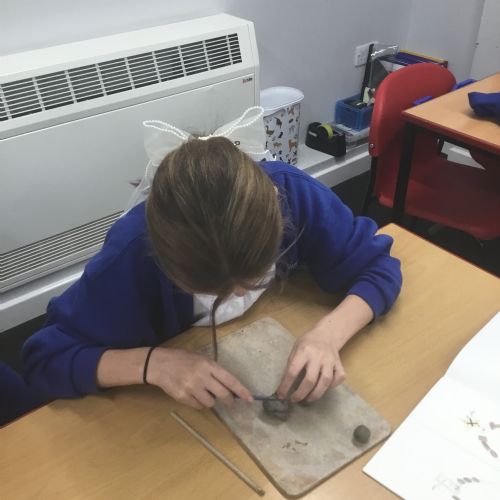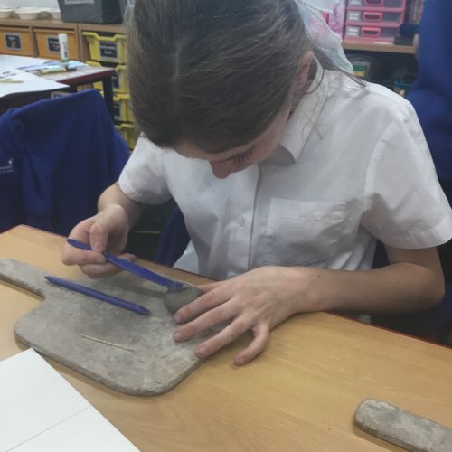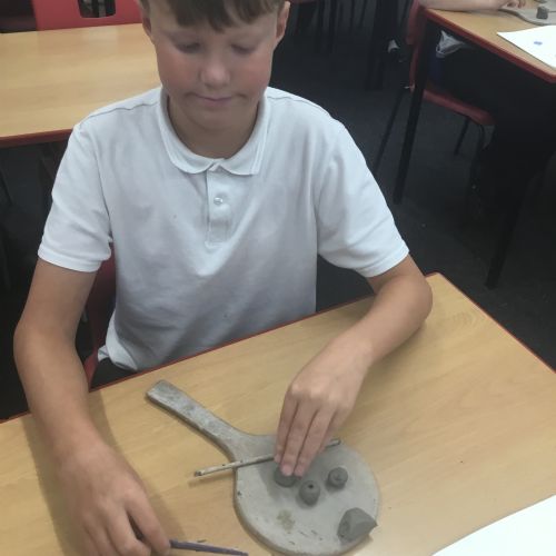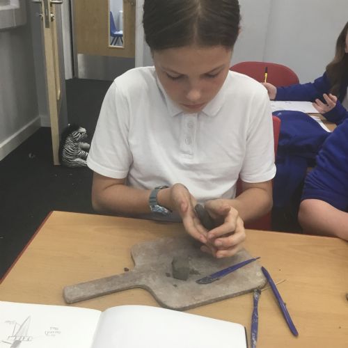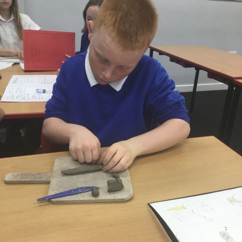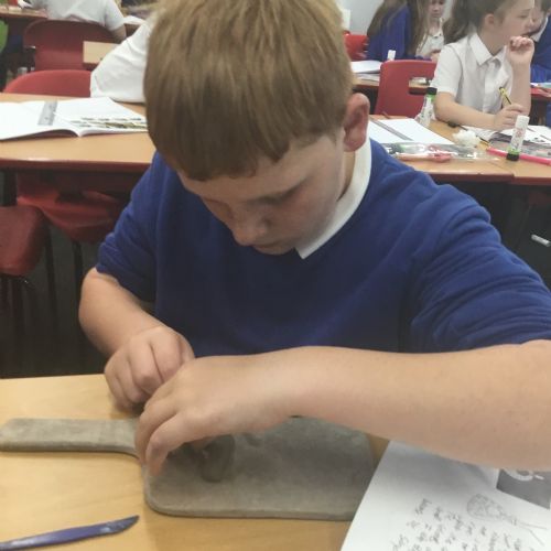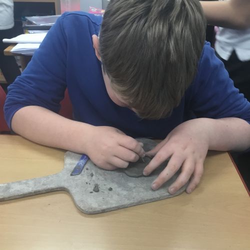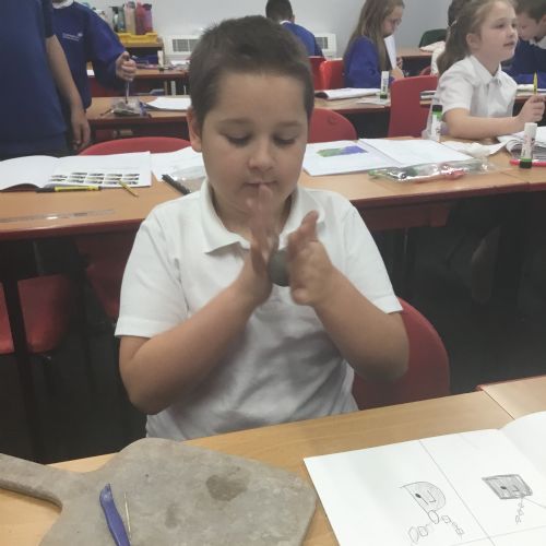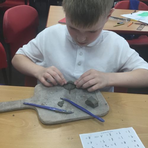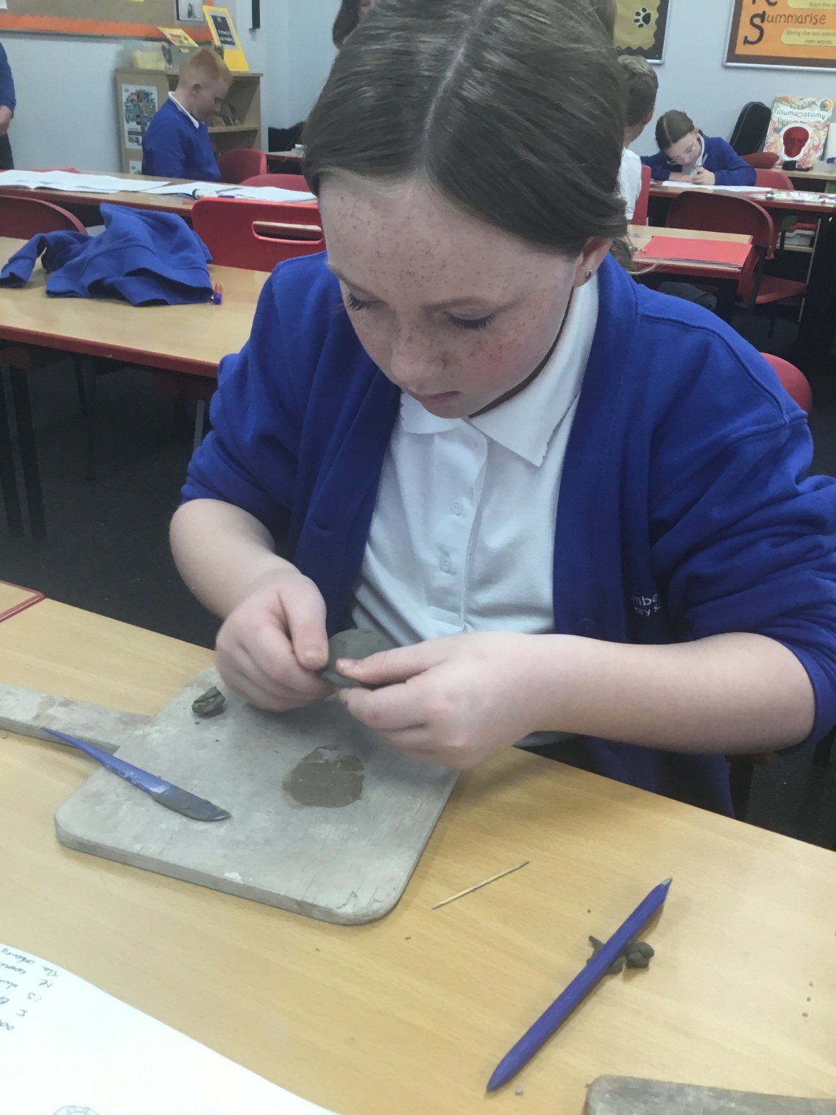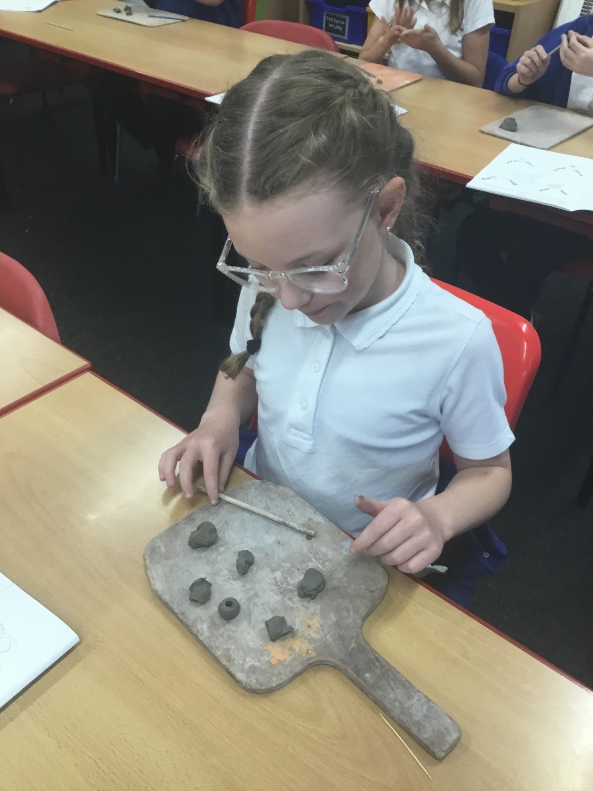As part of their art work, year 6 have made necklaces inspired by their history work on the Vikings. They used carving, shaping and joining techniques with clay to create a pendant and beads.