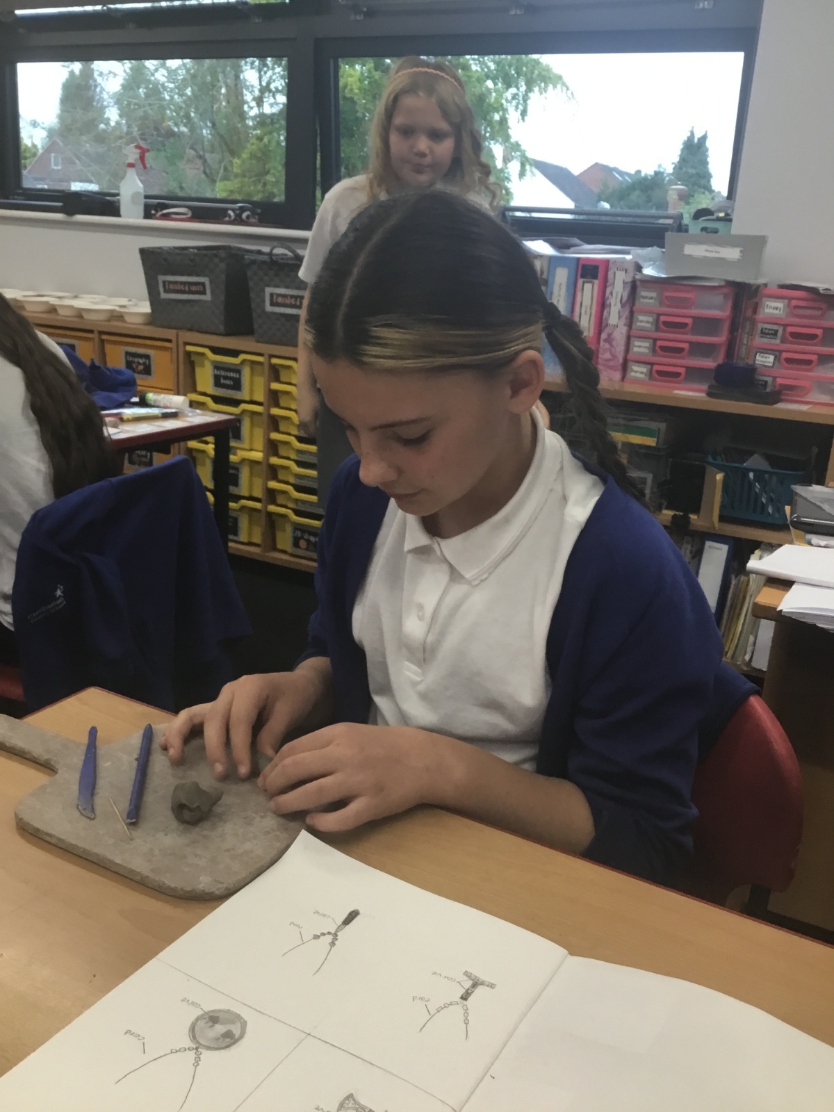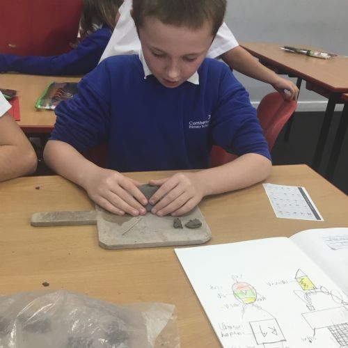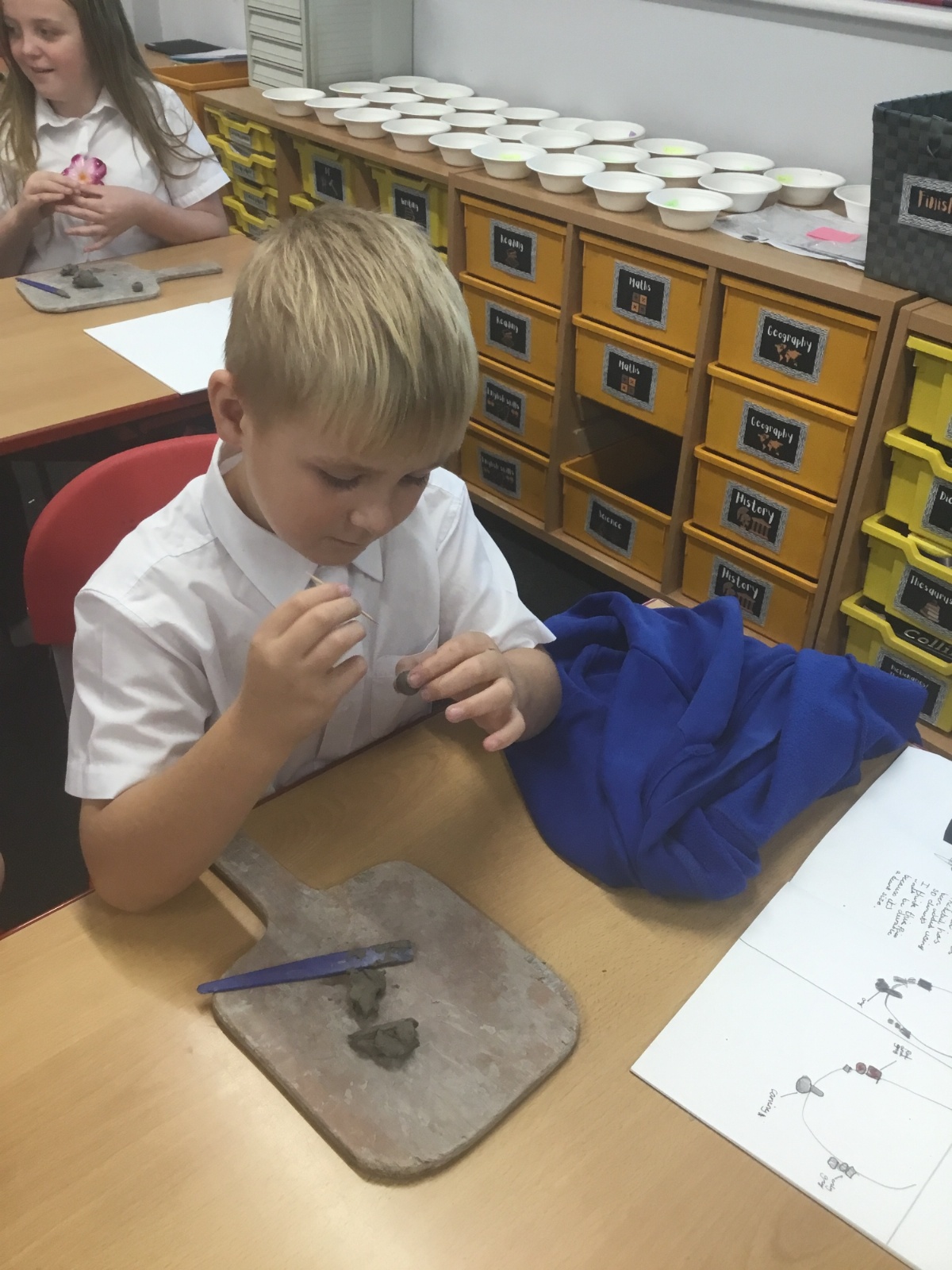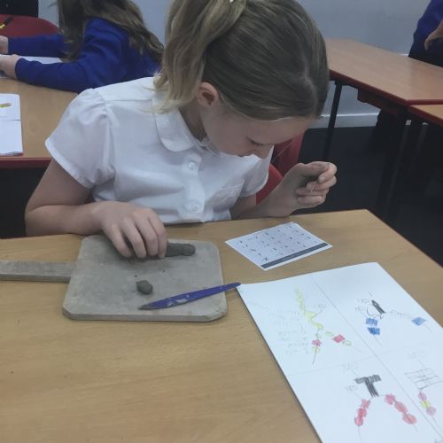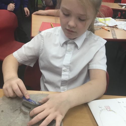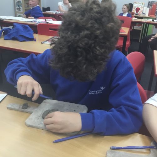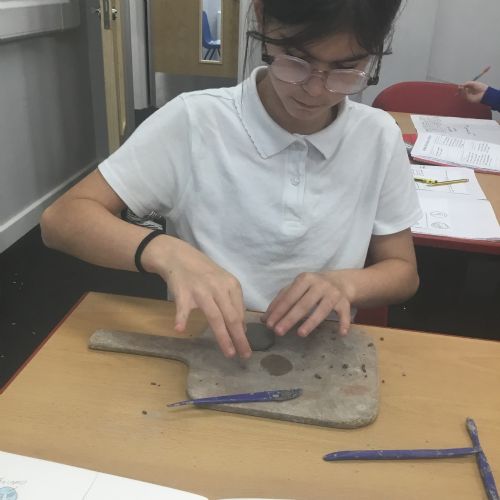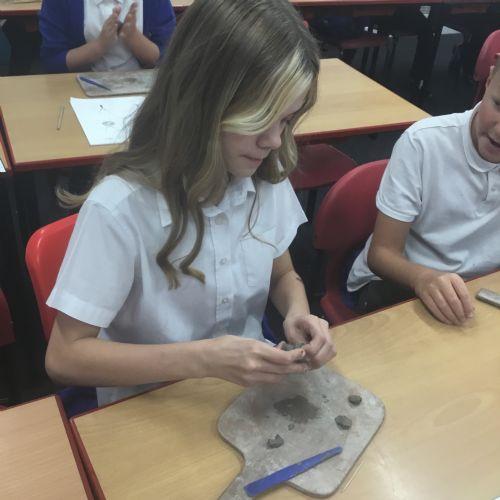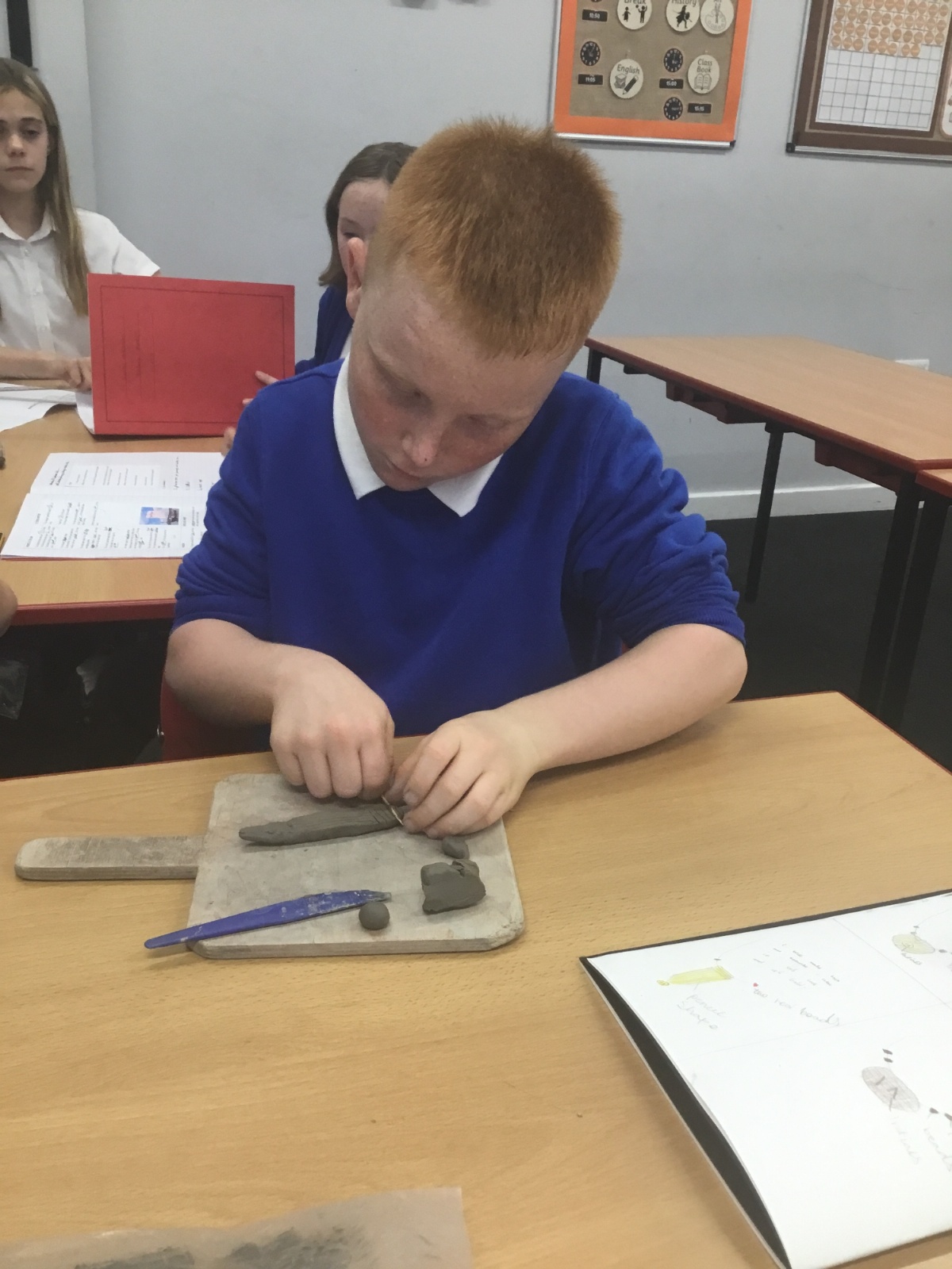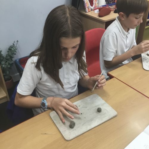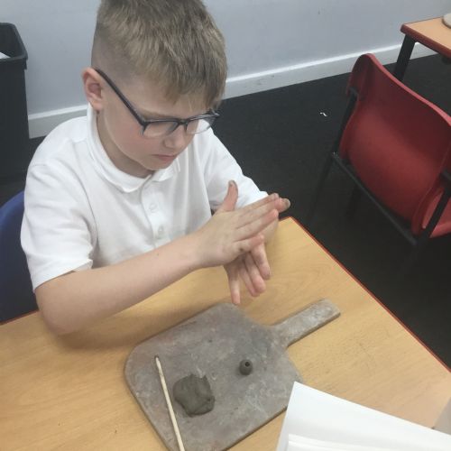 As part of their art work, year 6 have made necklaces inspired by their history work on the Vikings. They used carving, shaping and joining techniques with clay to create a pendant and beads.