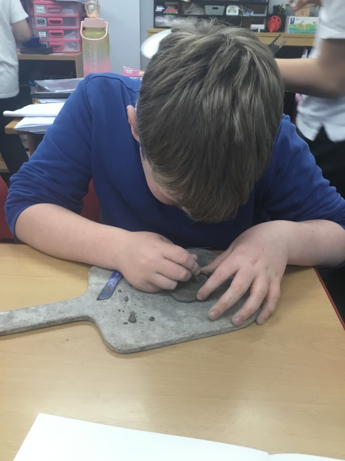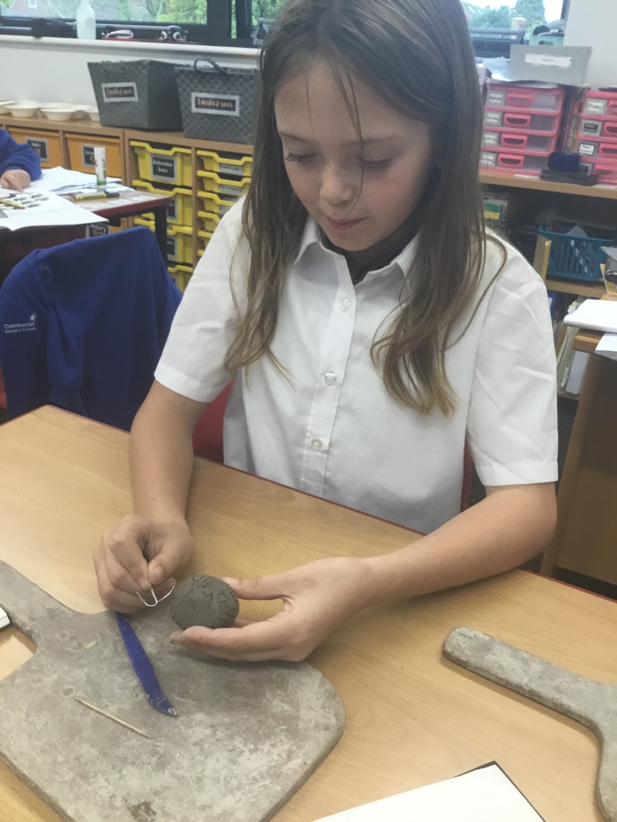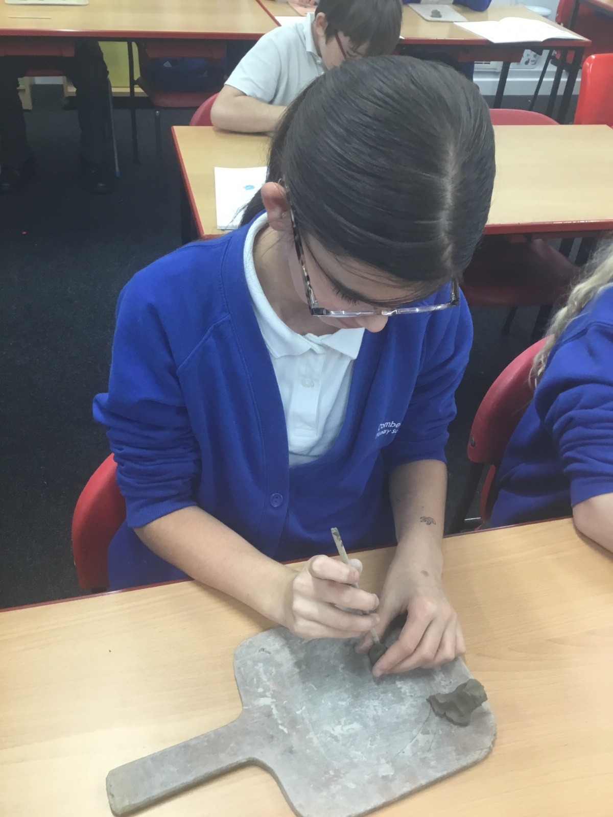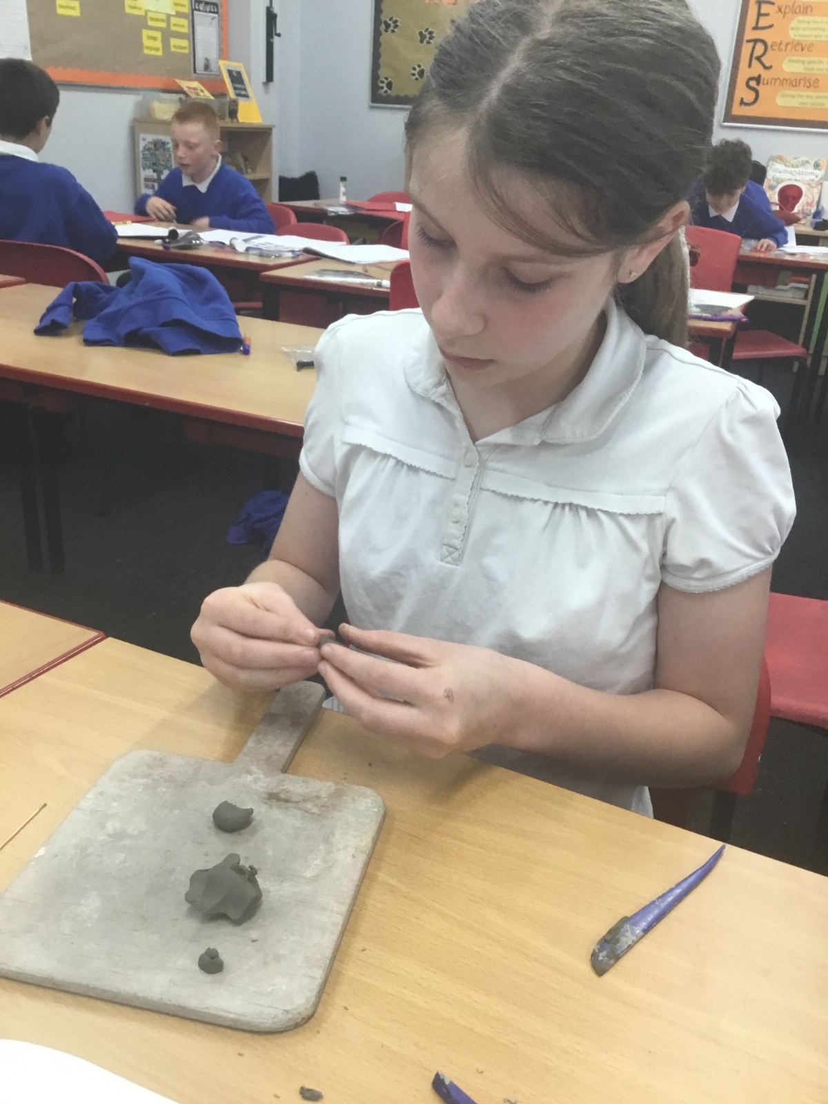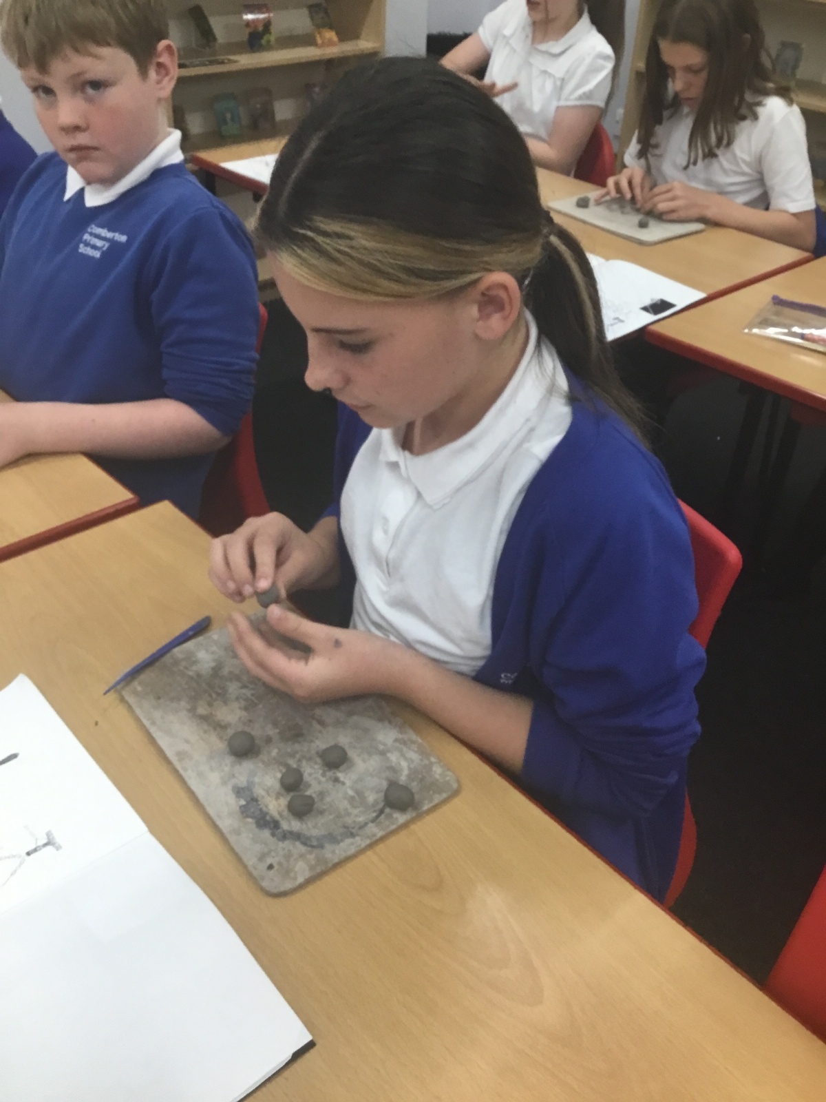 As part of their art work, year 6 have made necklaces inspired by their history work on the Vikings. They used carving, shaping and joining techniques with clay to create a pendant and beads.