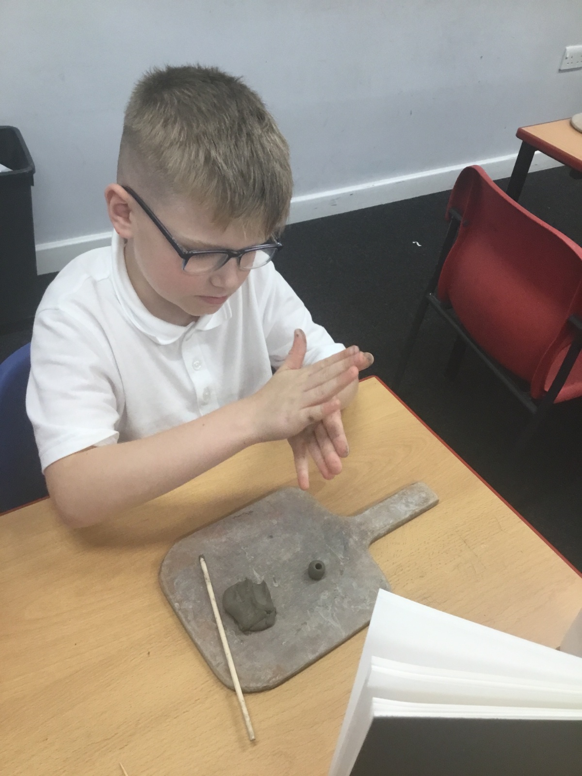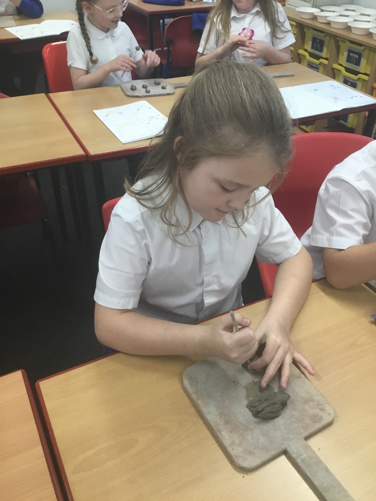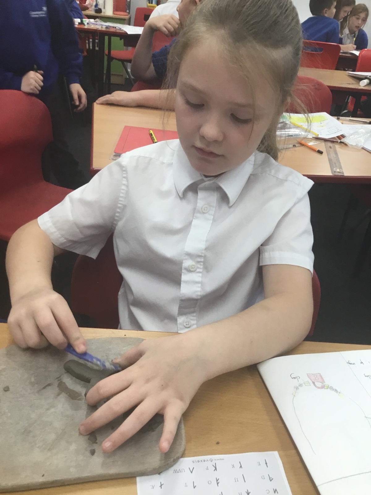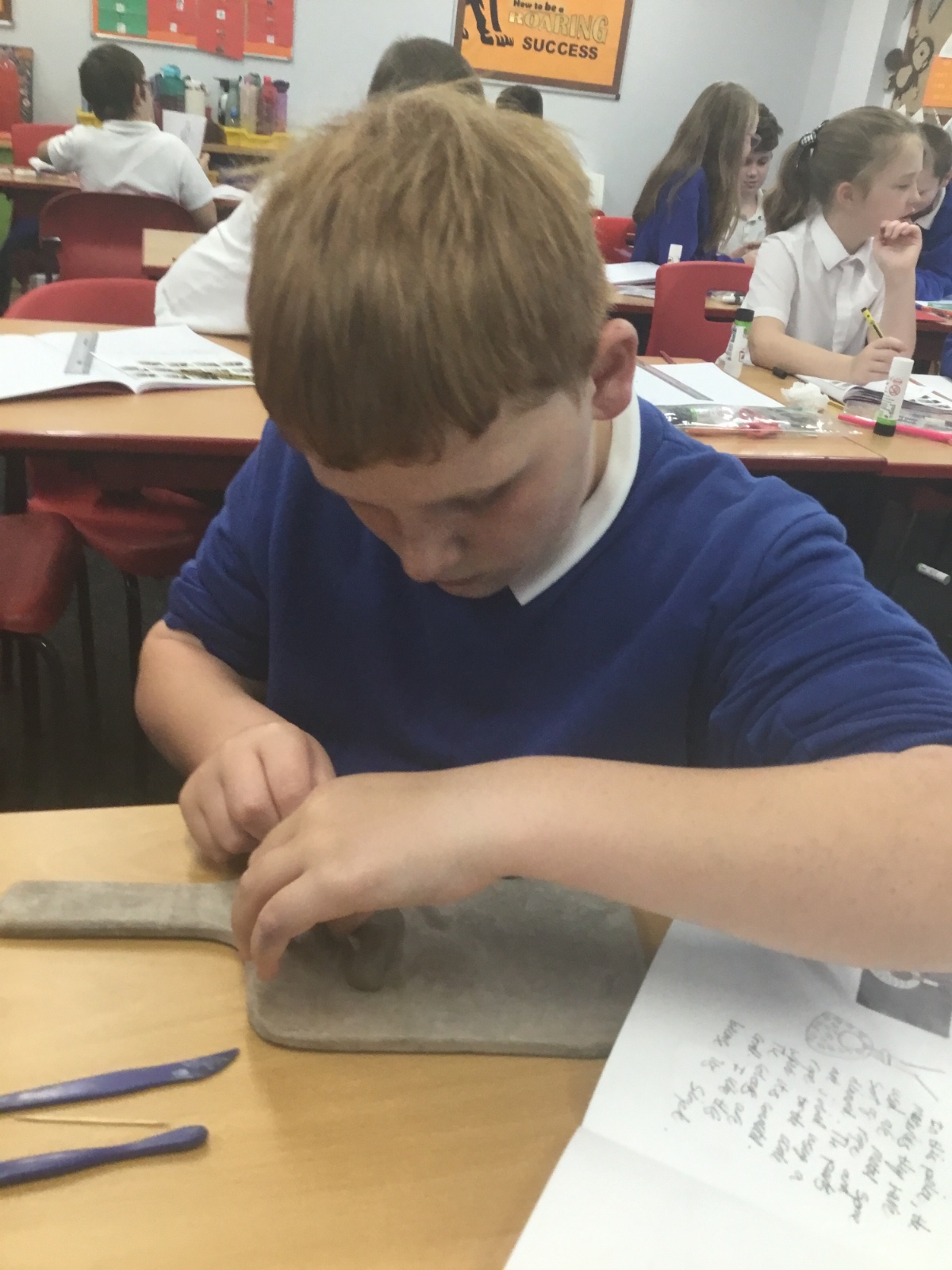 As part of their art work, year 6 have made necklaces inspired by their history work on the Vikings. They used carving, shaping and joining techniques with clay to create a pendant and beads.