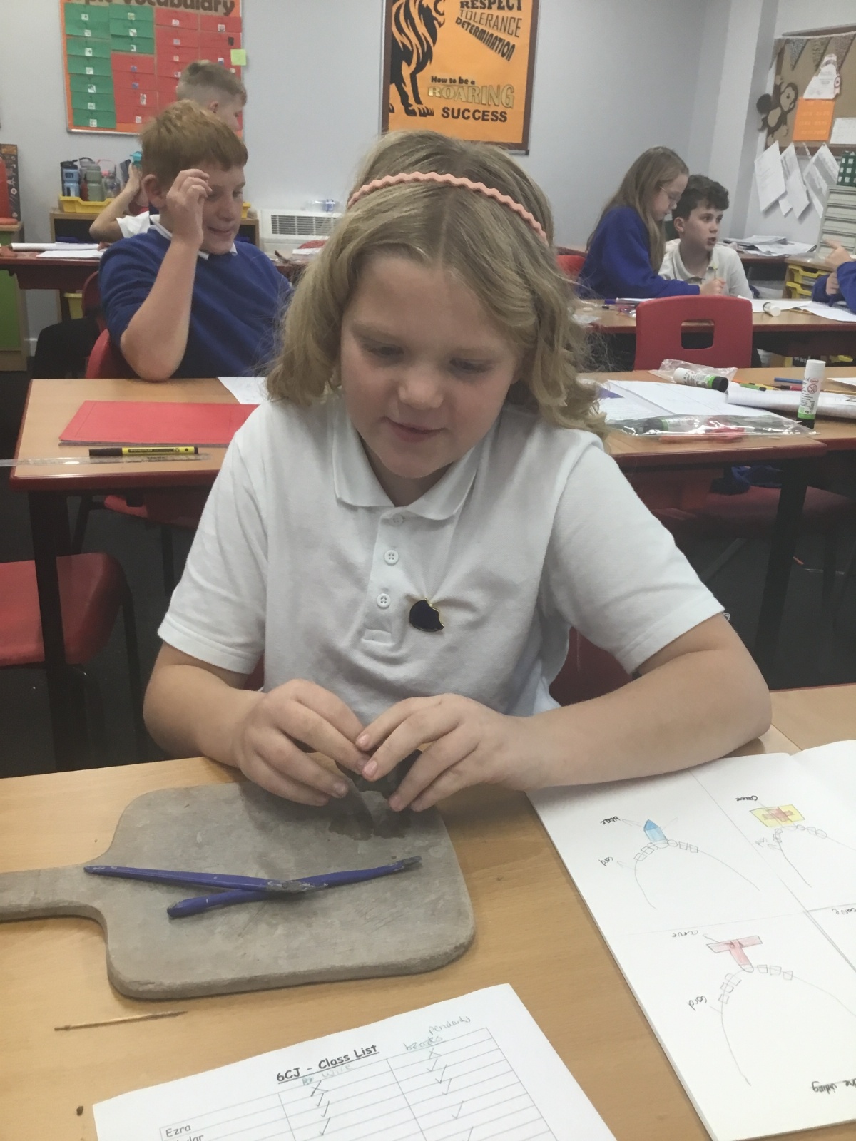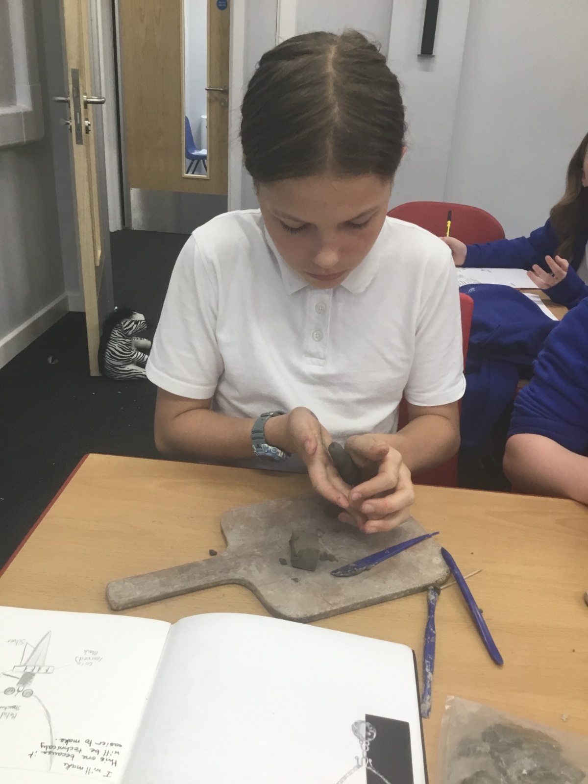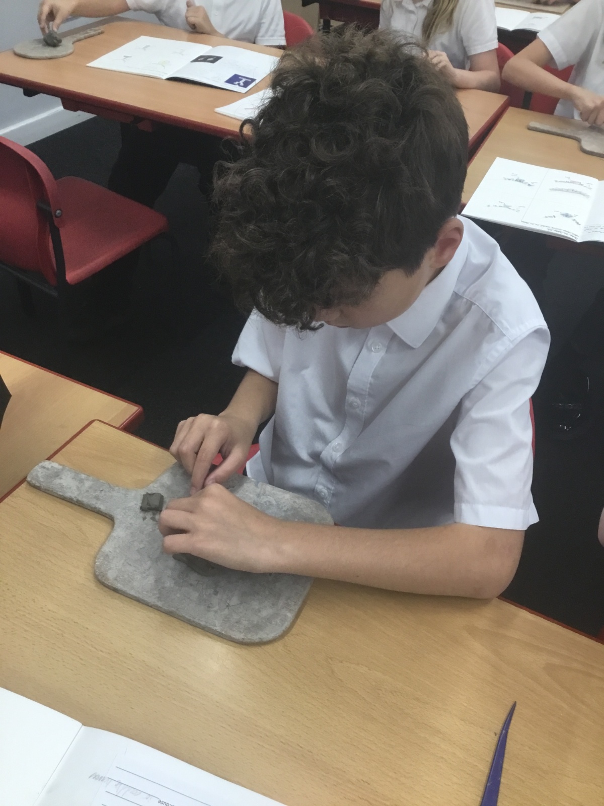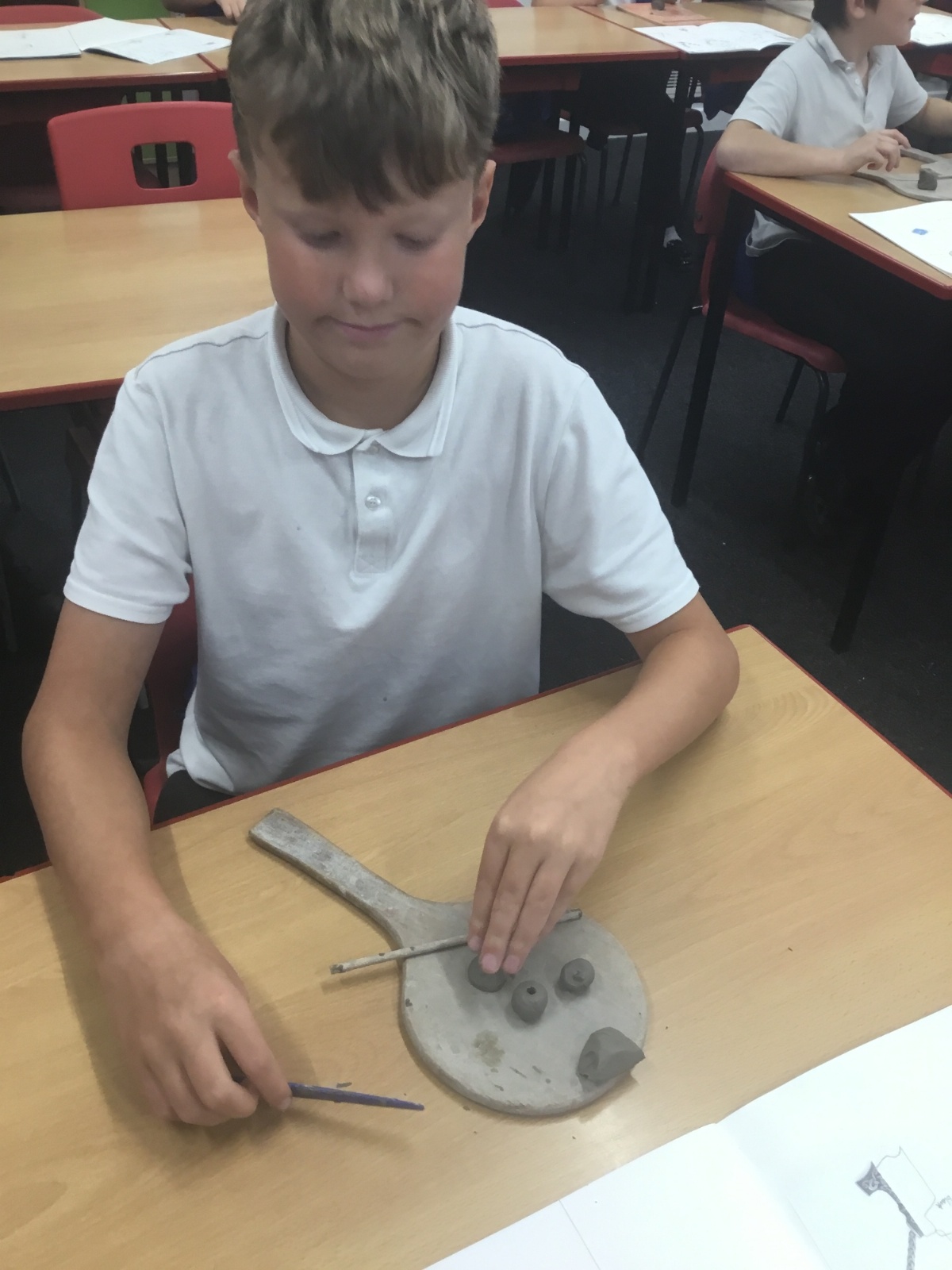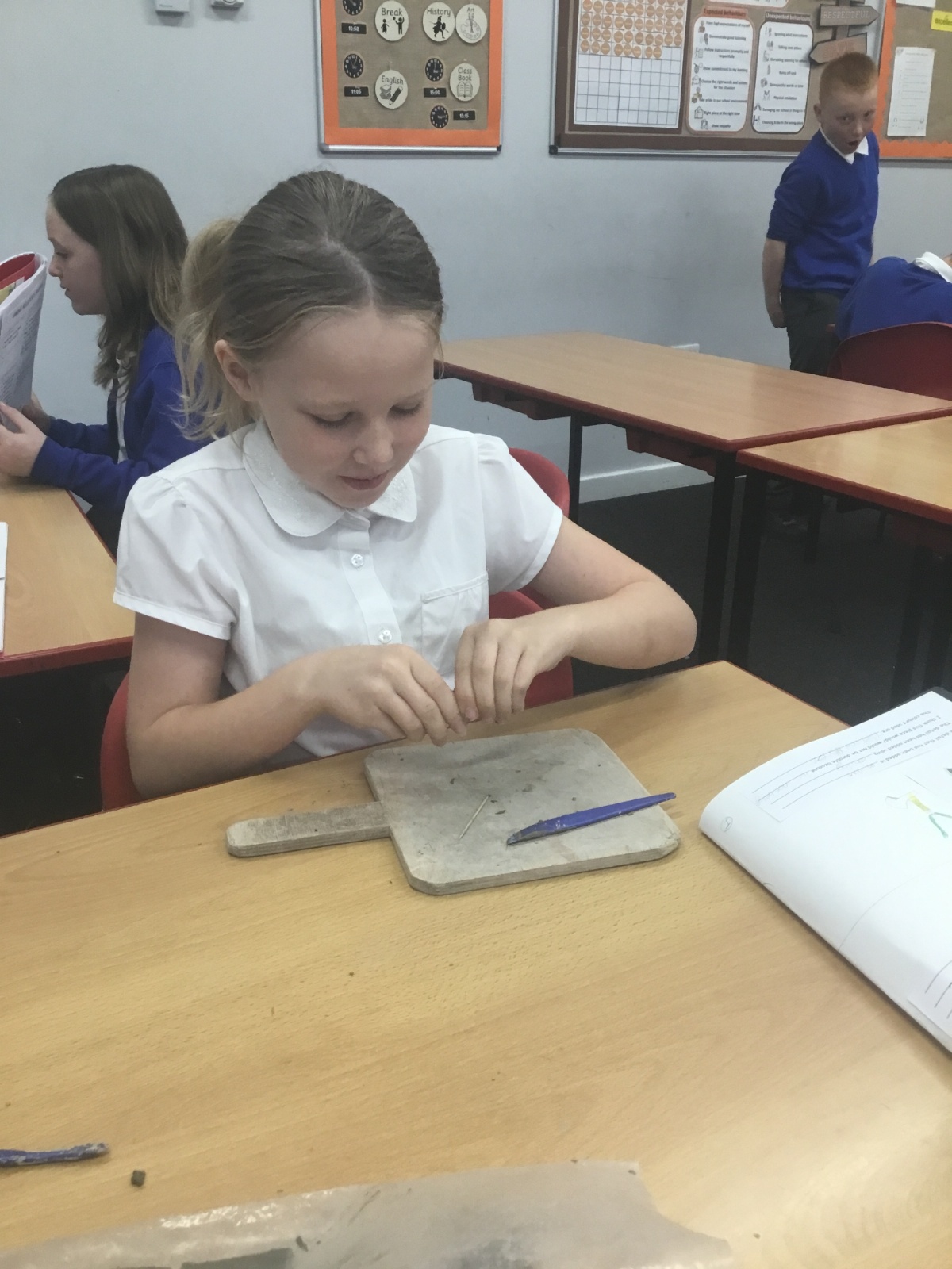 As part of their art work, year 6 have made necklaces inspired by their history work on the Vikings. They used carving, shaping and joining techniques with clay to create a pendant and beads.