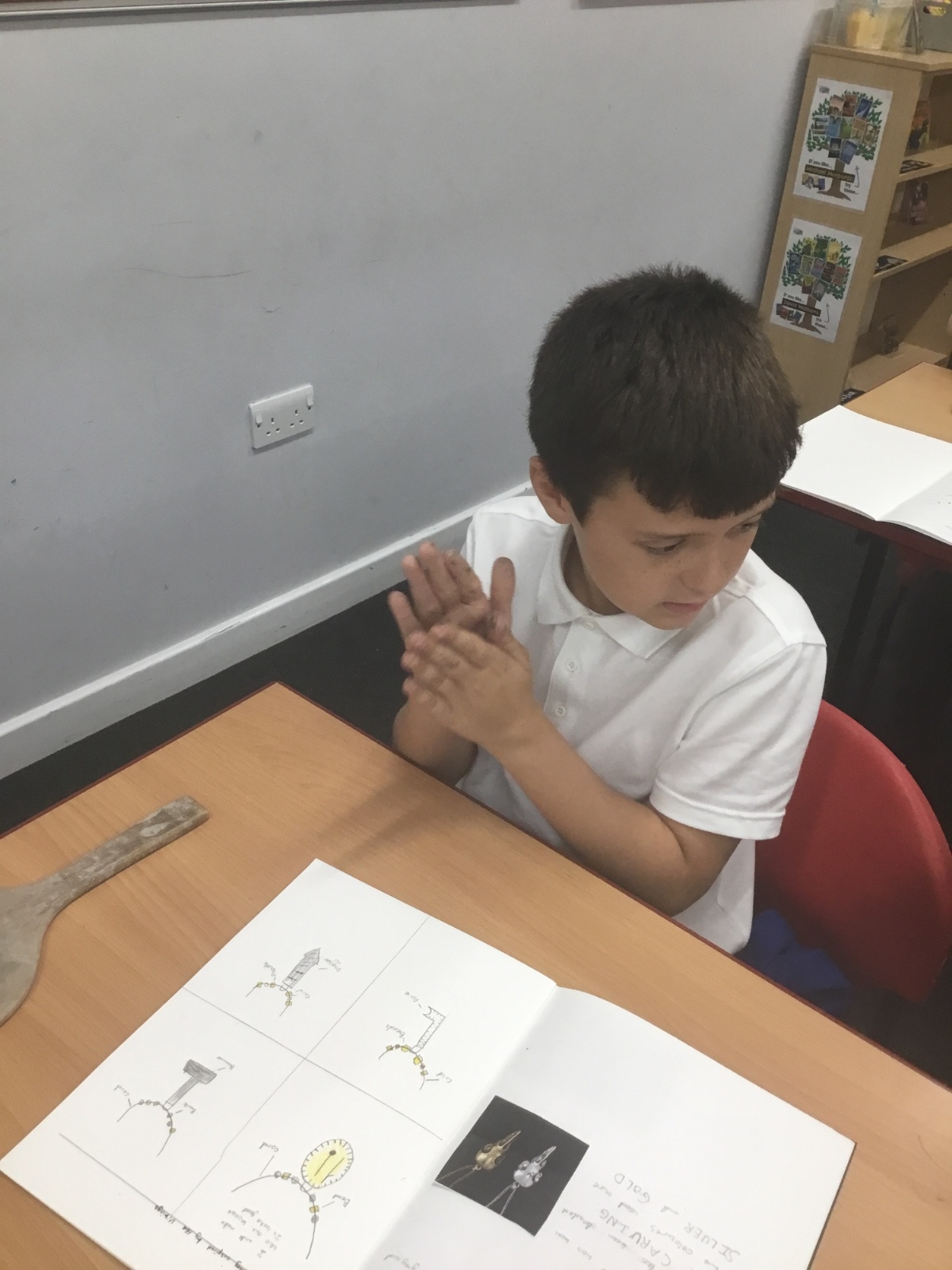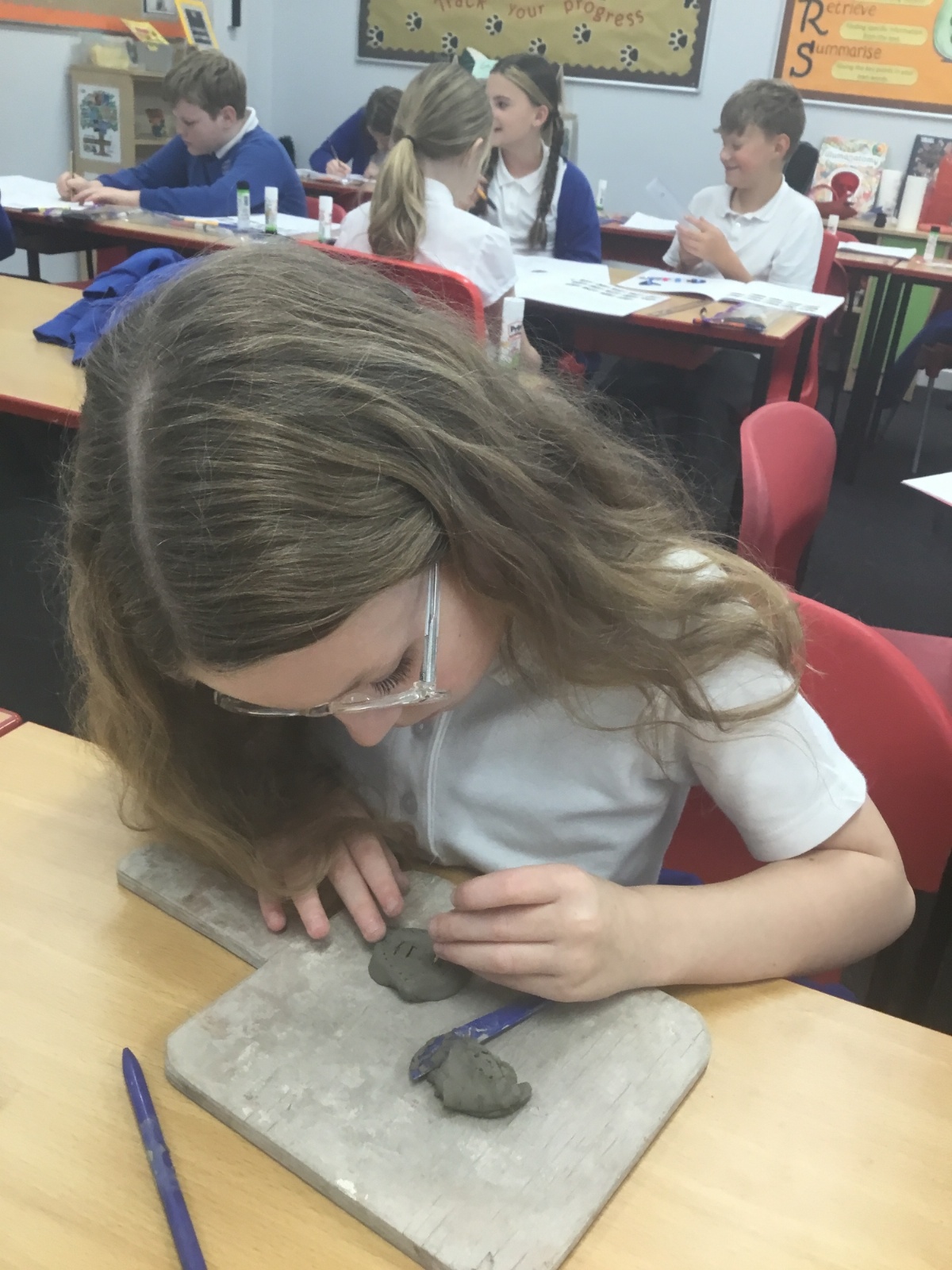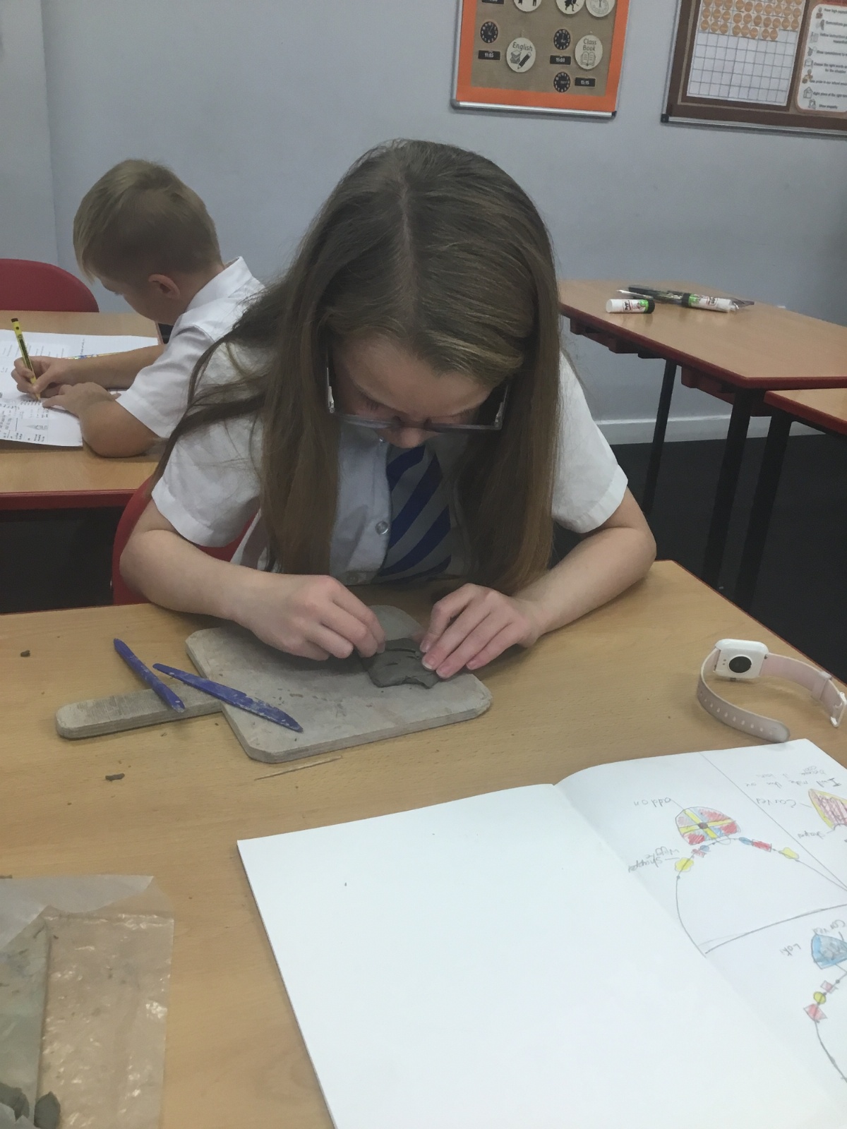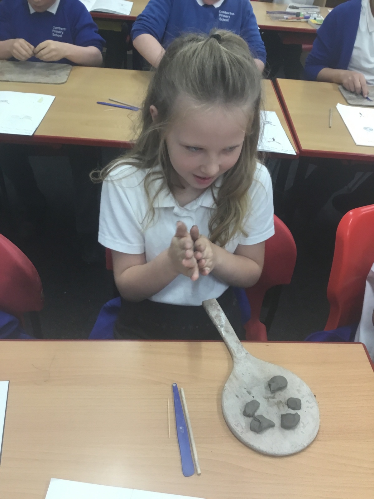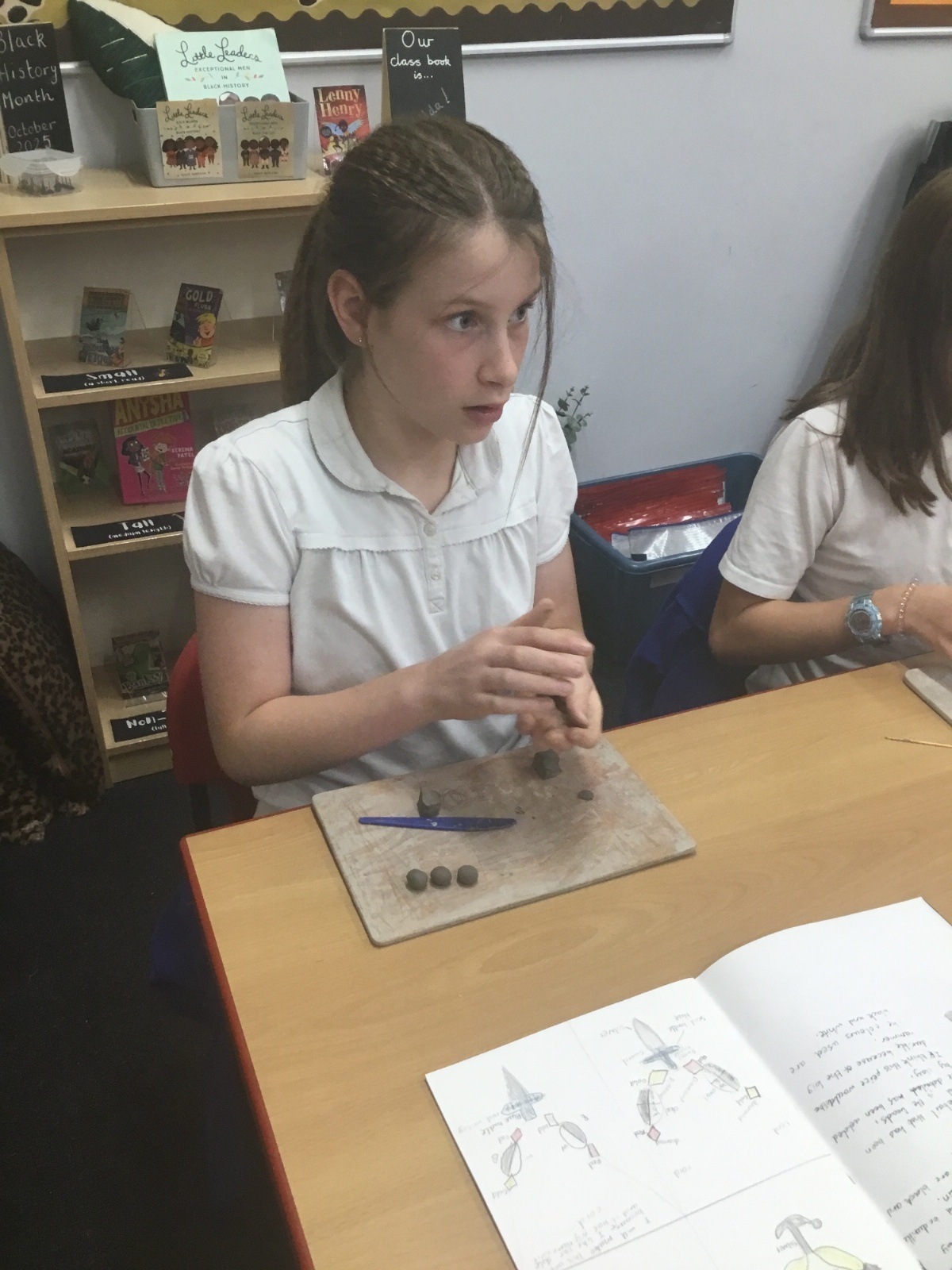 As part of their art work, year 6 have made necklaces inspired by their history work on the Vikings. They used carving, shaping and joining techniques with clay to create a pendant and beads.